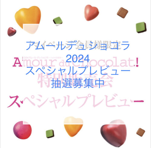 チョコレート『2024アムールデュショコラスペシャルプレビュー』抽選応募スタート!日程、応募の仕方まとめ 「アムールデュショコラ特別販売会スペシャルプレビュー」の抽選応募が11月17日(金)からいよいよスタートします!アムールデュショコラメイン会場を一日早くショッピングできちゃう「スペシャルプレビュー」、毎年楽しみにしている方も多いのではないで... 2023.11.18チョコレート