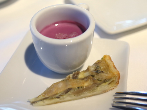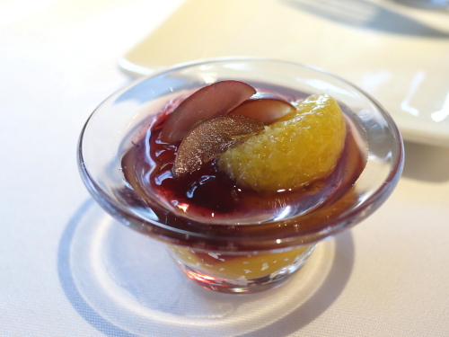 葡萄とオレンジのジュレ、葡萄かと思いきや底からさわやかなオレンジジュレがでてきて色合いも新鮮。 これが今回の一番かな。