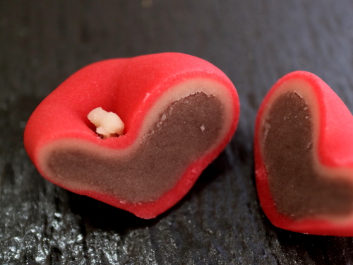 中はなんと三つ重ね、ハートみたいですね。甘さ控えめでなめらかな口あたりは感動ものです。