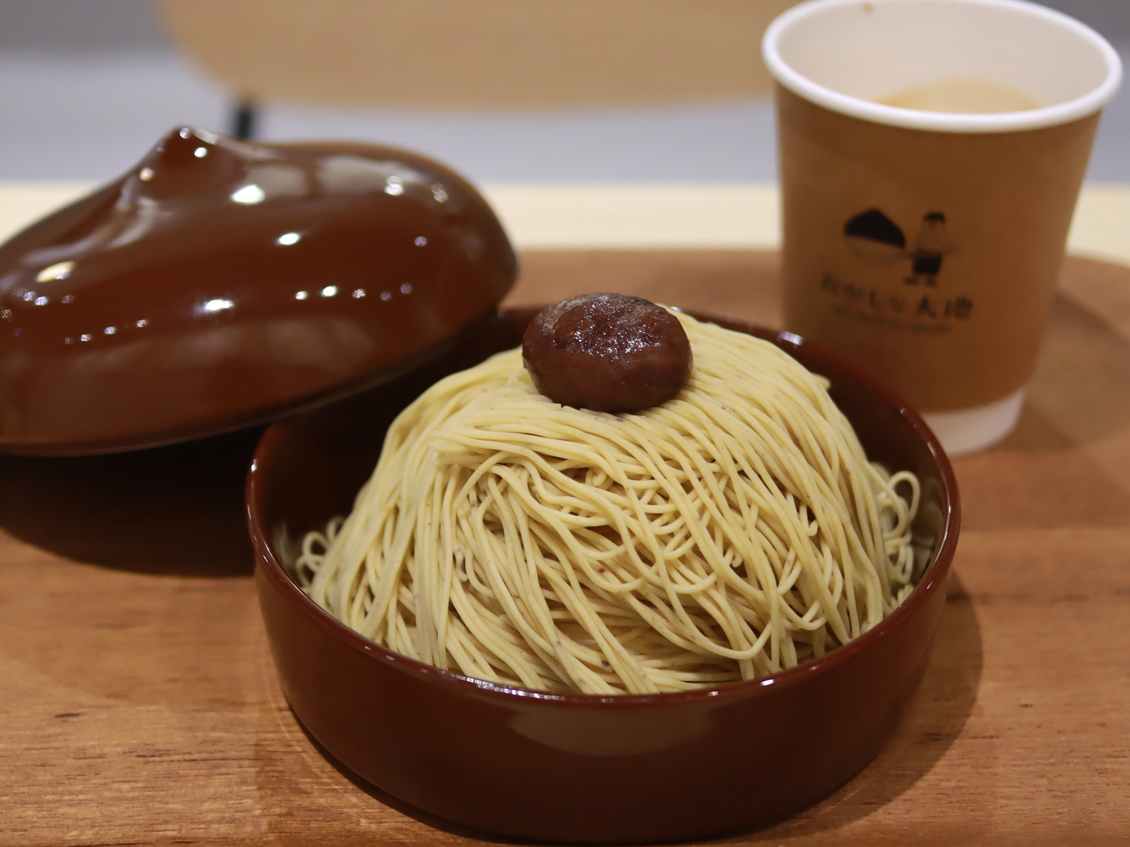 テーブルには温かいお茶が用意されており、イートインもできるようです。