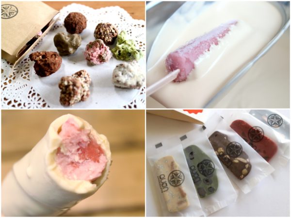 アイスクリームのフレーバー4種、コーティングのチョコは3種から組み合わせ、自分だけのアイスを楽しむことができるんですよ!