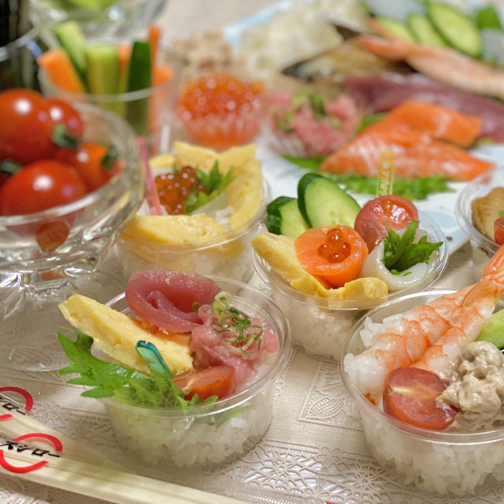 桶のお寿司も一緒に並べれば一気に豪華に!