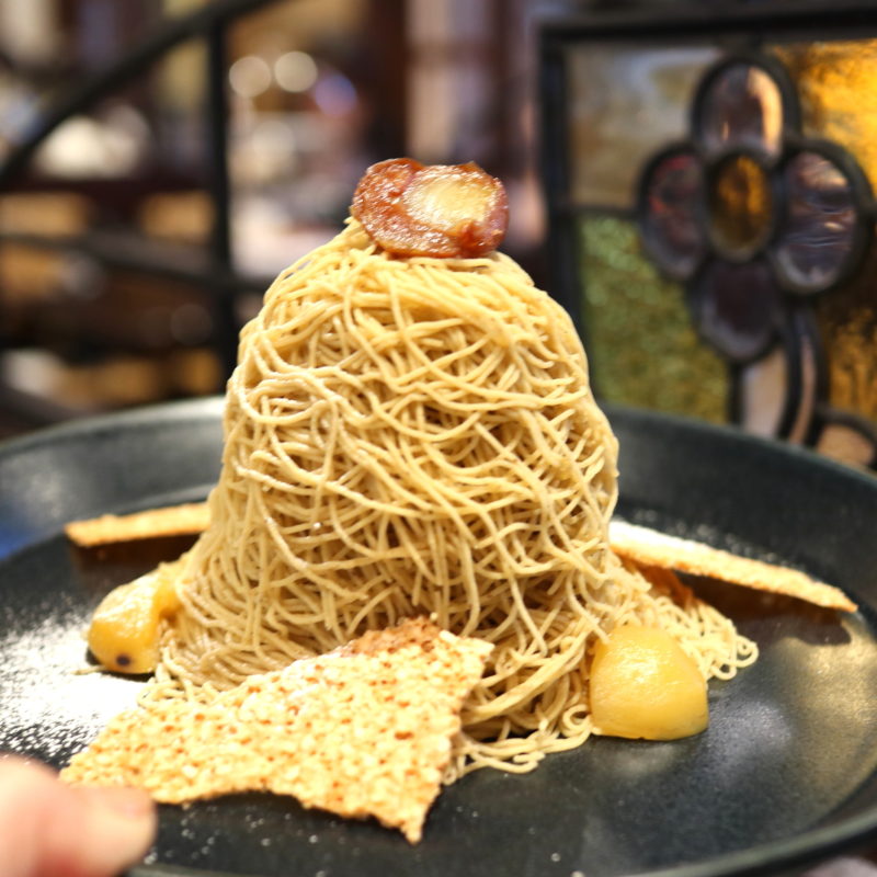 茶縁のクッキーの後ろには生チョコ、わらび餅や甘栗、お豆ものっかったちょっと珍しい和風ケーキです!