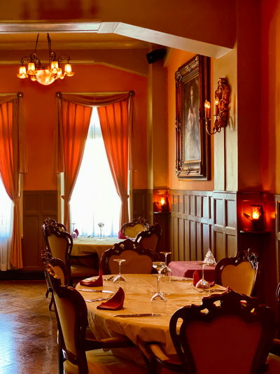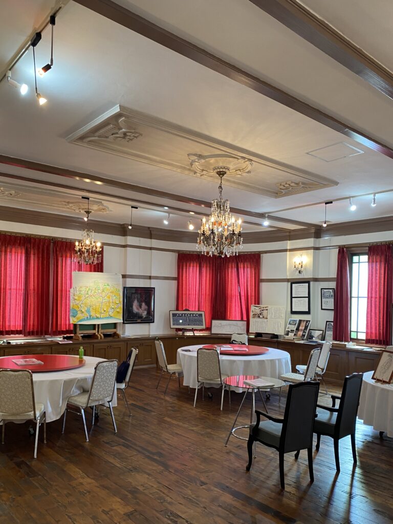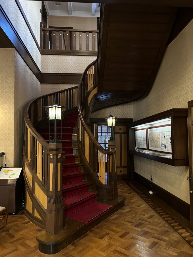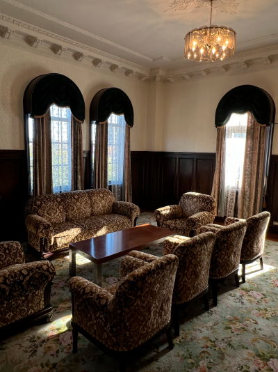 1階エントランスを入ったホールと1室を見学させていただいたが歴史が感じられる重厚な雰囲気を味わえた。