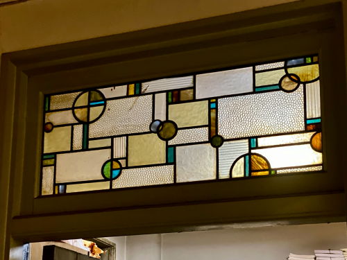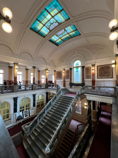 ホールの華やかなステンドグラスはほぼ当時の姿で保存されており、他の部屋にも多くのステンドグラスを見ることができる。