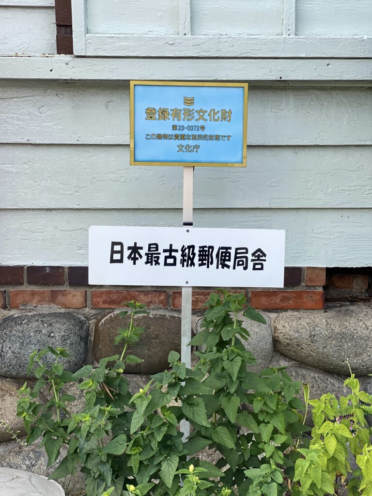 1902年(明治35年)竣工日本最古の郵便局舎として登録有形文化財となっている「知多岡田簡易郵便局」。木造2階建ての洋風建築で明治の面影を残す。