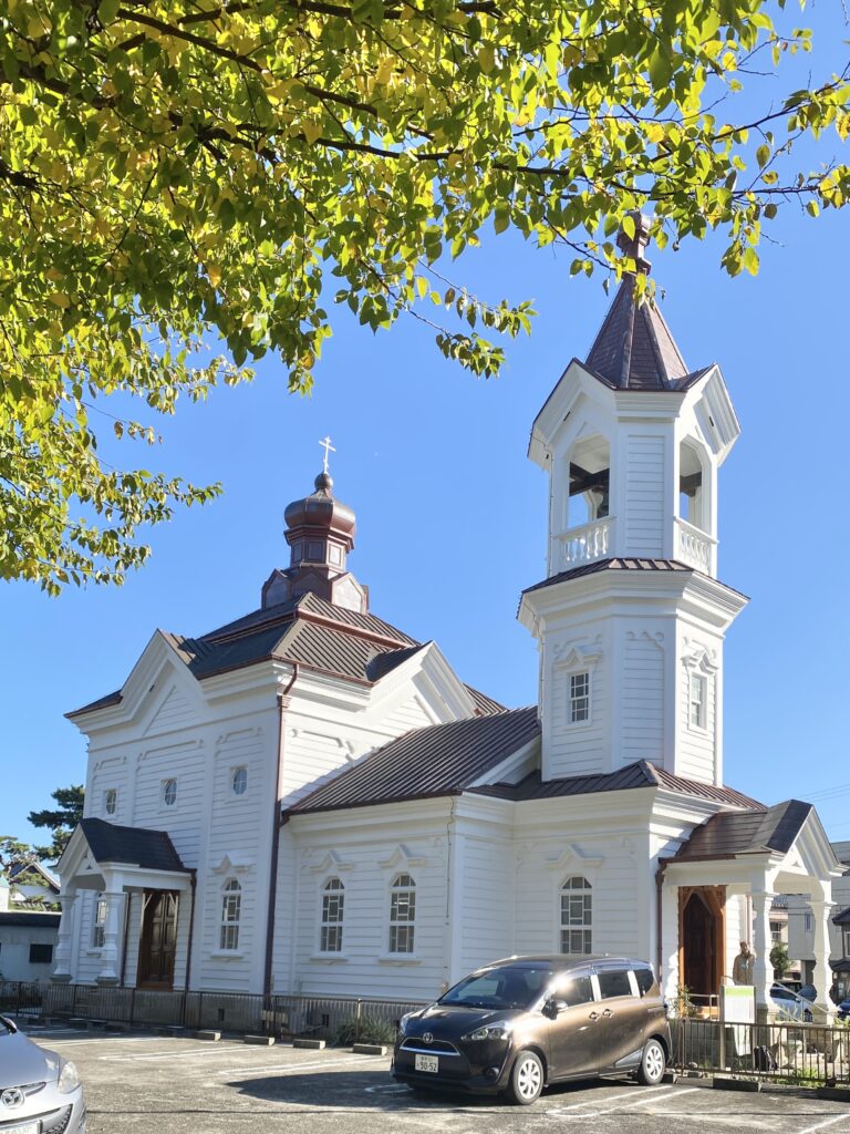 1913年(昭和2年)竣工、ロシア・ピザンチン様式の木造聖堂は重要文化財となっている。