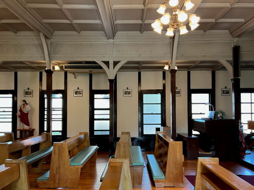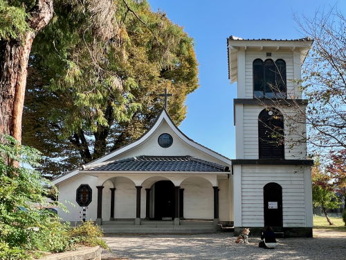 明治に建てられた名古屋最古のカトリック教会、三角屋根の礼拝堂がかわいらしい。