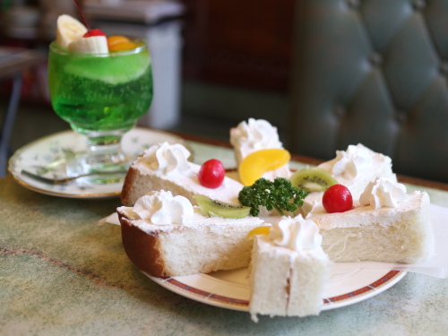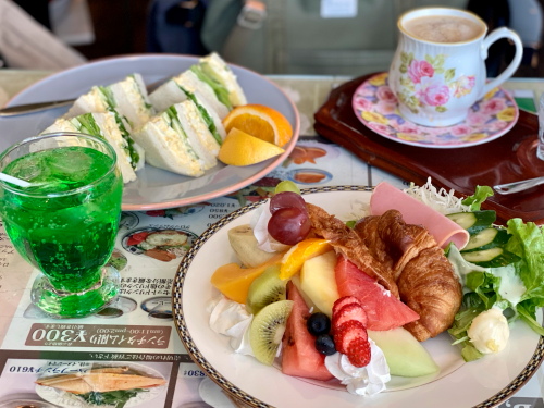 メニューがかわいすぎると人気の喫茶店『喫茶サンモリー』、赤いチェリーがポイントの「フルーツサンド」にカラフルな「カラフルソーダ」などメニューも豊富。