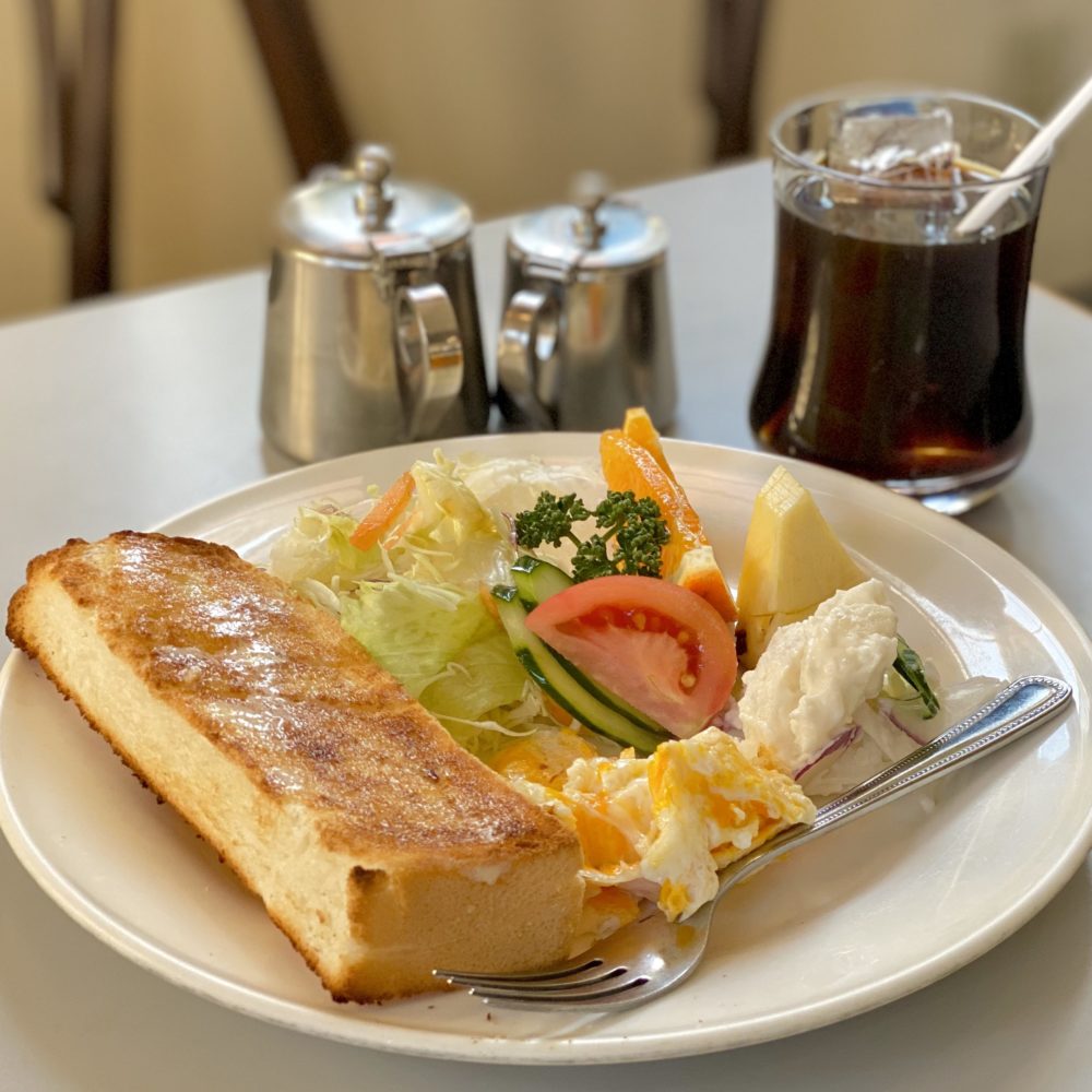 ドリンク代のみでトーストとゆで卵の王道モーニング、7時半のオープンから10時半までです。