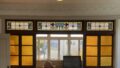 壁一面の圧巻のステンドグラスはほぼ当時のまま、一部だけ新しく作り直したグラスは大正グラスのゆらぎがないのでよく見るとわかります。