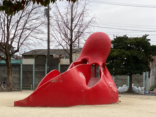 気になっていた南区「平子第一公園」通称『タコ公園』でのタコさん滑り台に会ってきました。