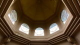ガラス細工の壁、グラデーションの煉瓦、丸いハンドル、なんとも素敵。