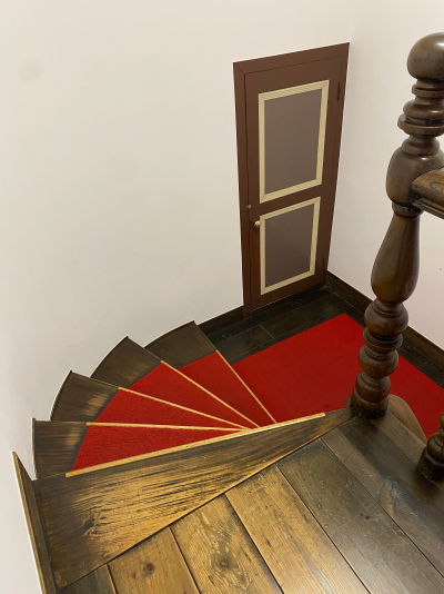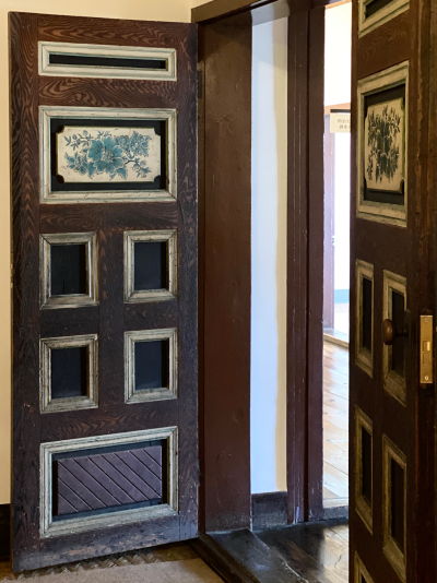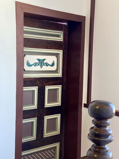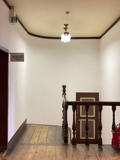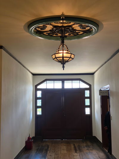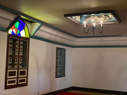 1階は教室だったらしくシンプルな部屋だが2階は扉からして豪華! 右側は仕切りはなく広い空間になっています。