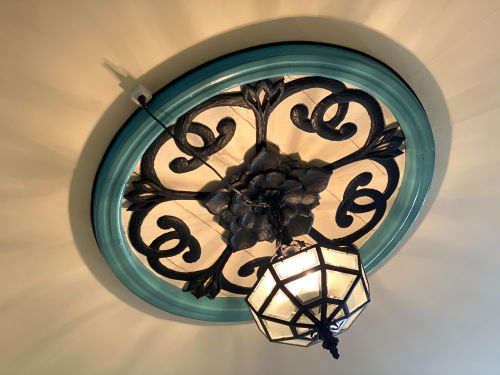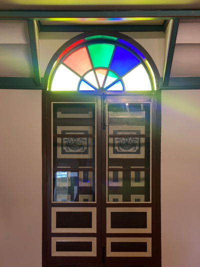 色ガラスの窓、八角形の塔屋にも色ガラスが使われているそうです。