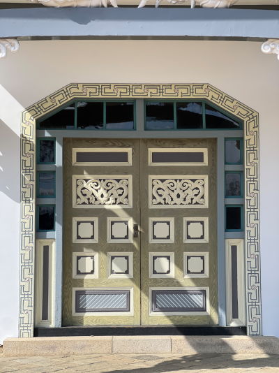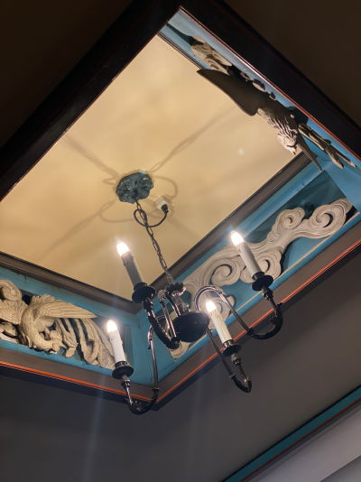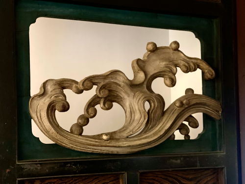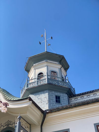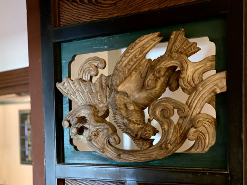 車寄せには龍、2階には瑞雲、その上には天使の彫刻。繊細な大工さんのお仕事ですね。