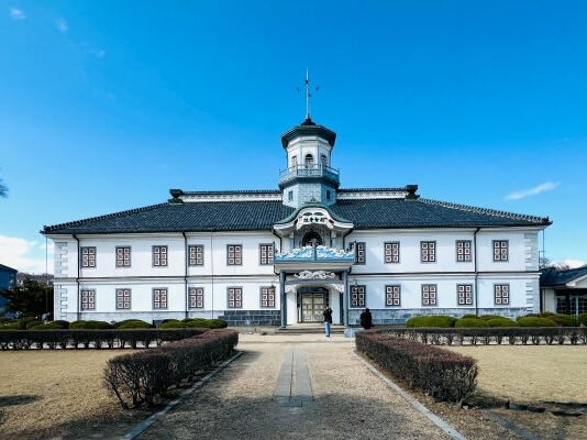 1876年(明治9年)竣工、地元大工「立石清重」が東京や横浜に赴いて当時最新の洋風建築の情報を収集して疑洋風建築校舎。