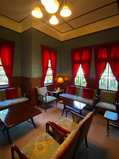 応接室として使われていた洋館、窓が多いですね。 地下室もあり娯楽室として使われていたそうです。