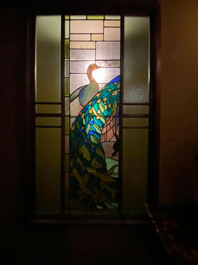 入り口横にはステンドグラス、大正ステンドグラスは色合いがやさしくて品がありますね。