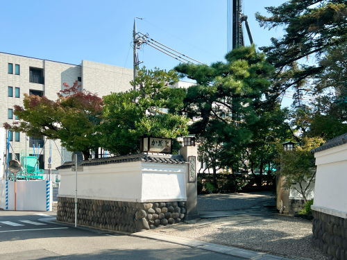 アクセスは市バス「清水口バス停」徒歩5分、高岳駅から徒歩15分ほどにある高級料亭です。