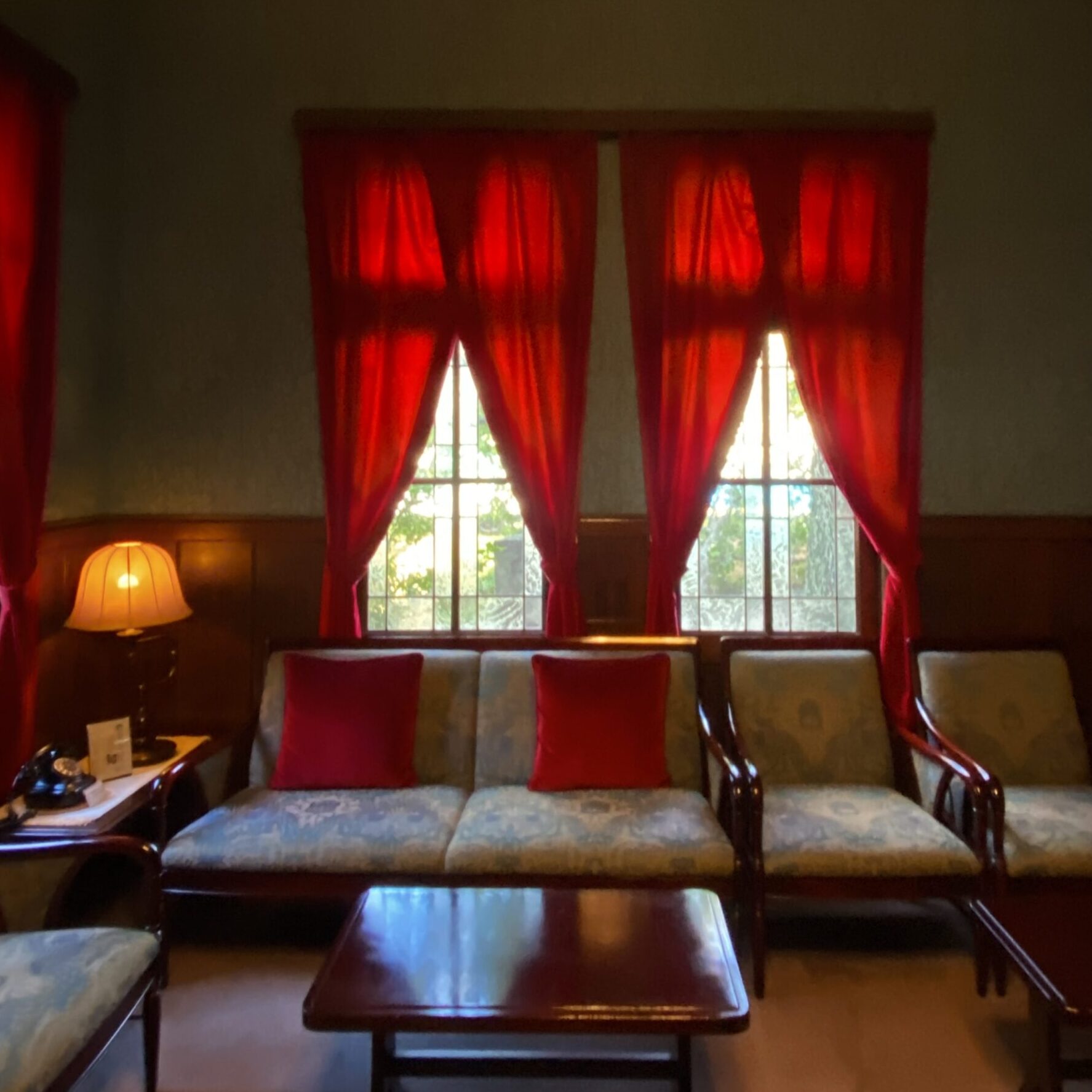 味わいのある大正グラス、窓枠もそのままでしょうか。