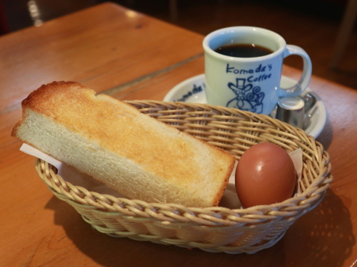 定番モーニングA「トースト+ゆで卵」とブレンドコーヒー(420円税込)。
