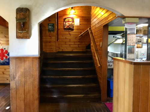 2階は大人数が座れるテーブルと椅子、予約席なのかな。