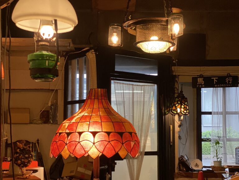 店内のインテリアなどはママさんのご主人がご自分でDIYされたとのこと、壁のブルーの照明ランプはなんとタライを半分にカットしたものなんですって。