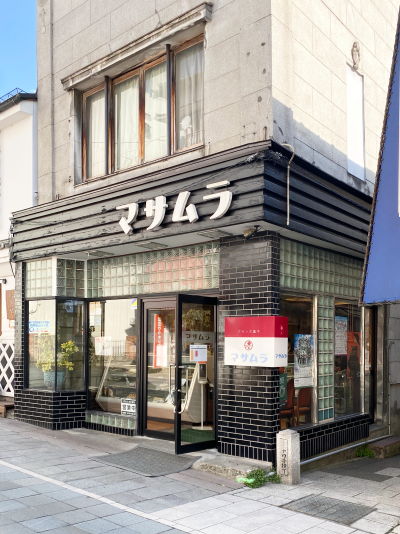 1966年創業のフランス菓子のお店「マサムラ」、ガラスブロックとタイルのお店がかっこいいです。