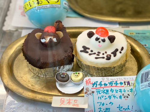 残念ながらお目当ての「たぬきケーキ」や「犬のルーパーくんクッキー」は完売してましたが、ショーケースにはかわいらしいサンプルケーキがたくさん!