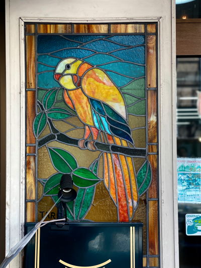 インコのステンドグラス、翁堂ロゴもインコのミミ―ちゃんなのでインコに思い入れがあるのかな。
