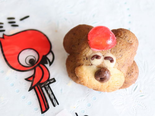 こちらのクッキー、顔と胴体が2枚重ねになっていてチョコが挟んであるの。3Dでめちゃくちゃかわいい!