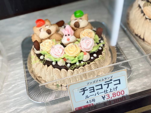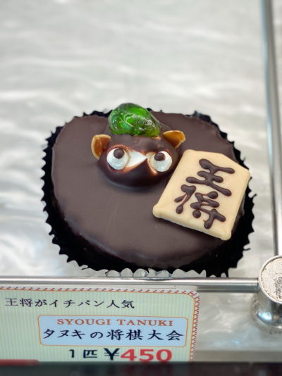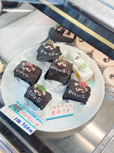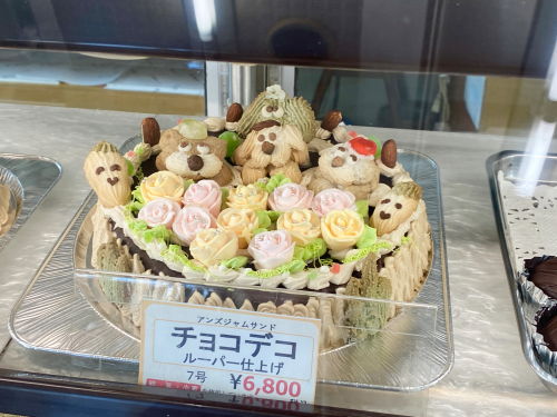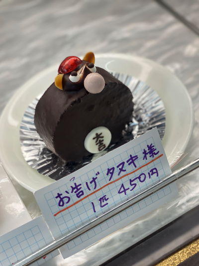 駅前店で犬のルーパーくんを買ったので、こちらではたぬきケーキを買おうと思っていたのですがショーケースに並んだたぬきケーキは見本だけだそう(涙)。