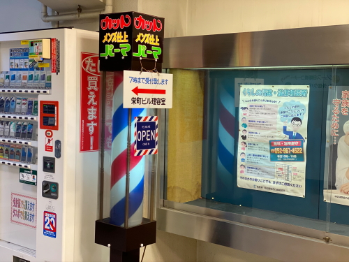 地下2階に合った「栄町ビル理容室」のサインポール。