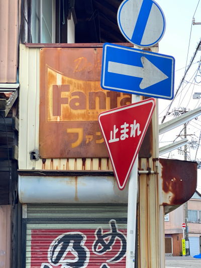 褪せた「ファンタ」の看板、ロゴがかなり古い。