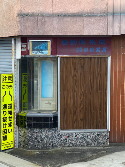 たばこ屋さん、「自動販売機24時間営業」と看板があり自販機が設置されていたようです。
