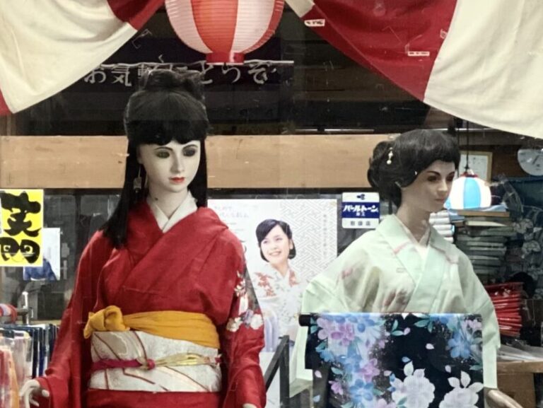 紅白幕の奥には制服?をきたマネキン。 蝶ネクタイがオシャレ。