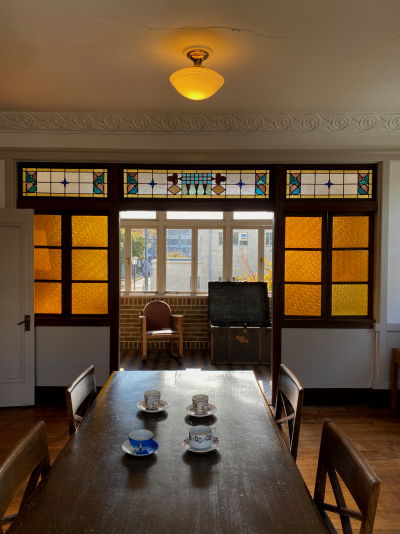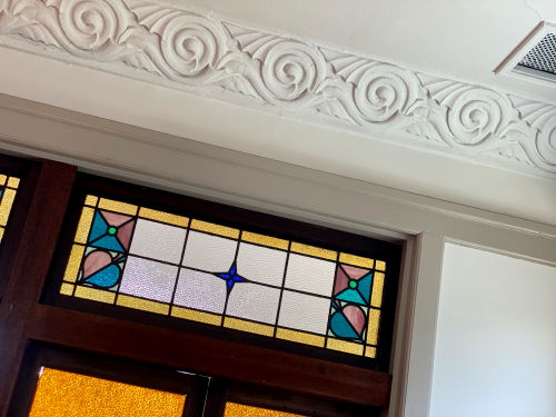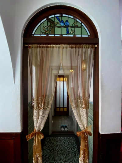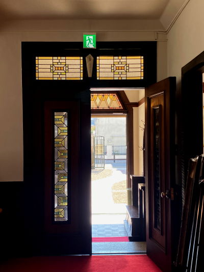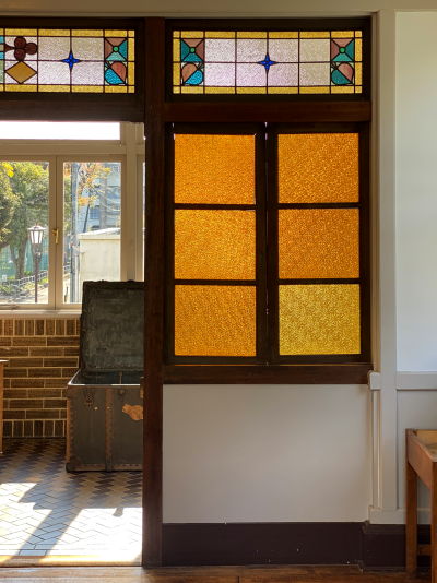 洋館には、当時の流行を先取りしたステンドグラスが各所に配置されております。