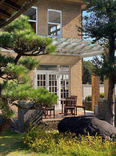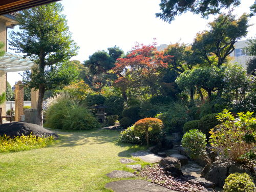 洋館と繋がる日本庭園。