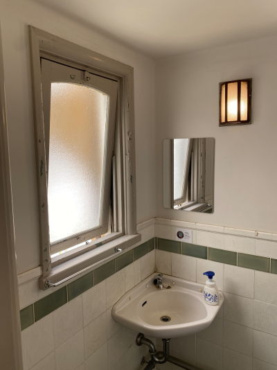 こちらの邸宅でも陶磁器の商談を行うため外国人バイヤーなどを招待していたそうで、2階には洋式トイレ・バスタブ・娯楽室などの設備を備えています。
