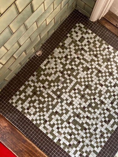 床のタイル、数種の色をランダムに合わせておしゃれ。