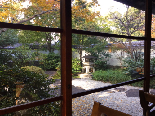 窓際からは庭園を臨み、紅葉を眺めながら食事を楽しめるので今の季節は特等席です。