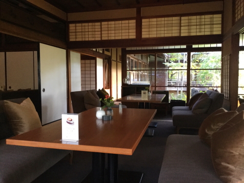 入り口を入ると中庭になっており離れに続く通路、奥はレストランになっています。