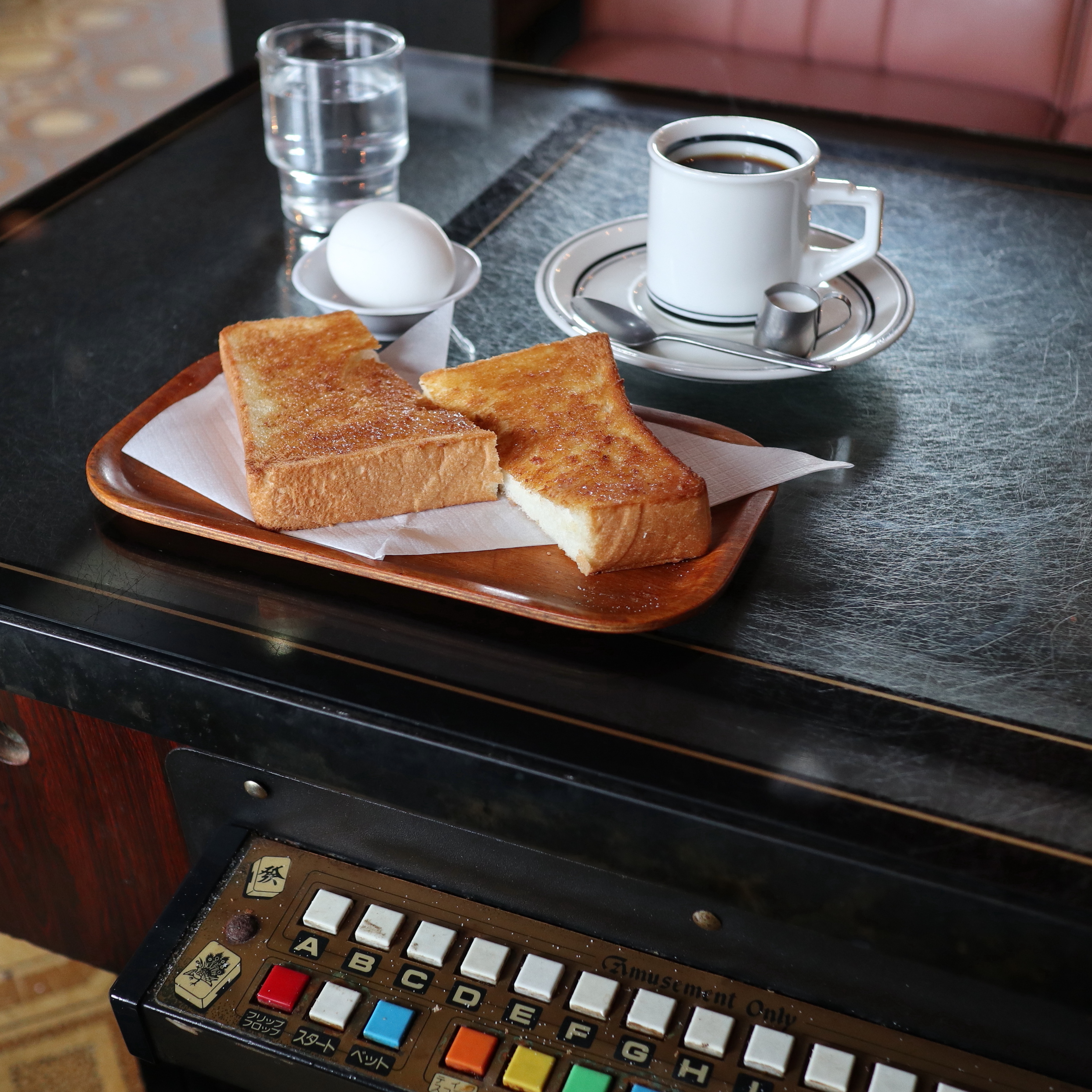 出入口のドア、使いこまれた床にも歴史が感じられます。