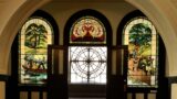 和テイストの大きなステンドグラスは圧巻。