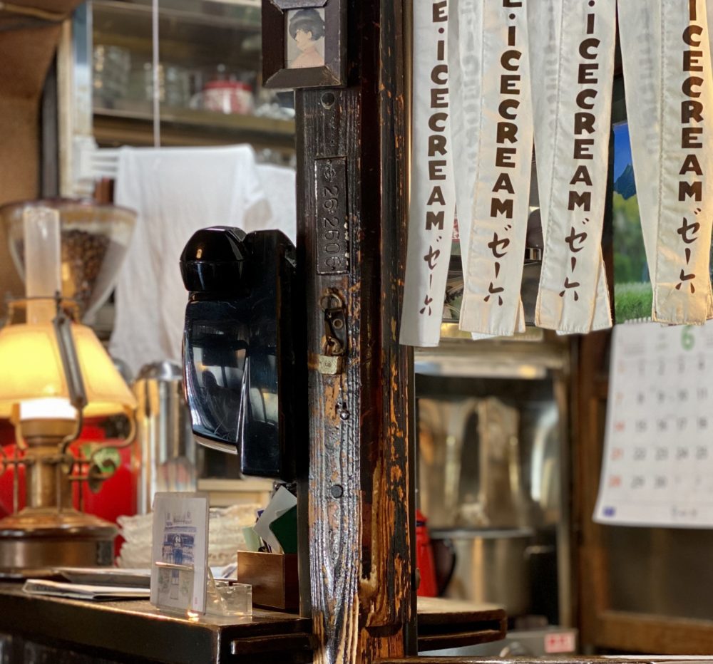 ノスタルジーな店内でいただくアイスクリン最中と自家焙煎コーヒー、目はキョロキョロと動きながらもゆったりとした時間を過ごしたのでした。